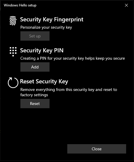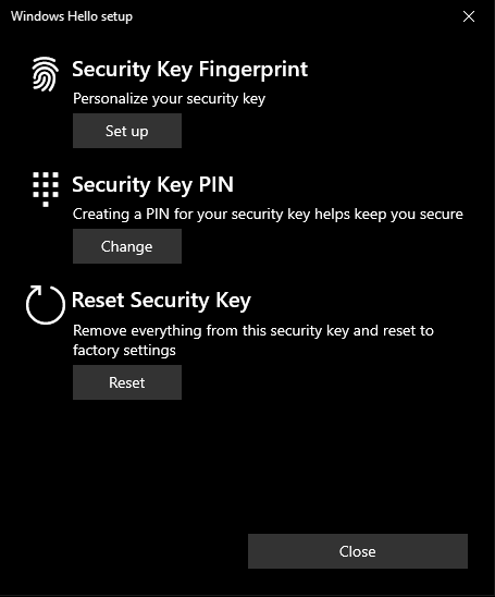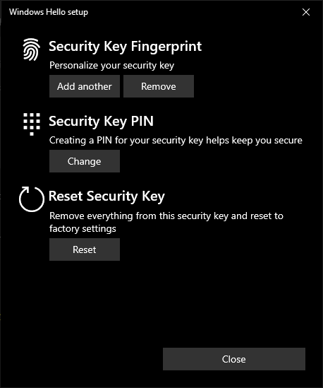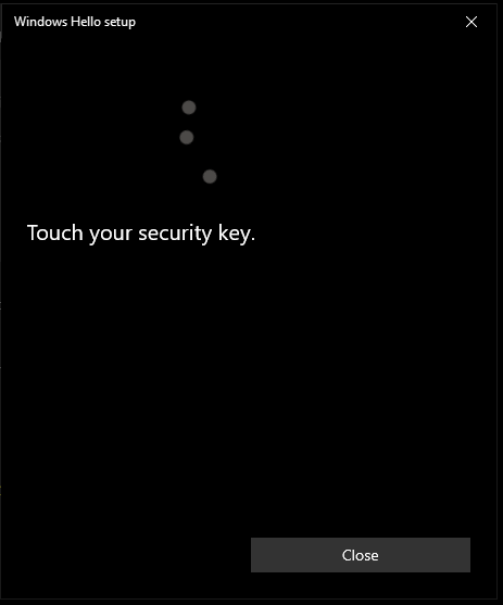 It asks me to touch the security key, so I put my finger on the fingerprint sensor and press Close
