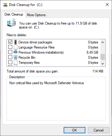 And as last we have the option to clean up Previous versions of Windows, also here think really good about it before you activate this option because it will keep the previous version for 10 days after you upgrade to a newer version of Windows and then is deleted and you can’t go back to the previous version of Windows.