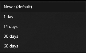 Also here you can change the default duration setting of ’never’ to the following durations.