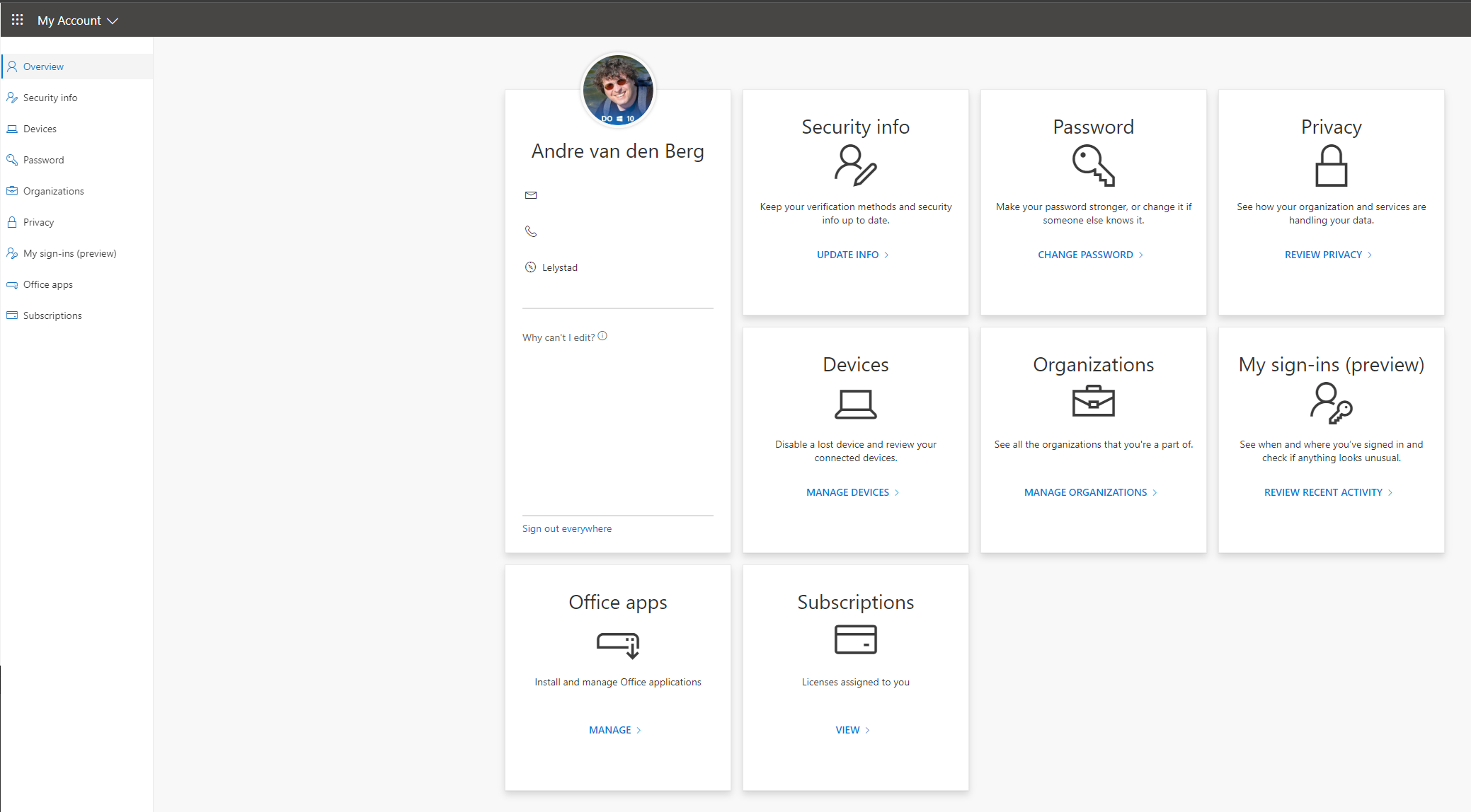 - My sign-ins (preview), see when you or someone else did try to sign in with your account, it’s still in preview but very interesting to see that people use your e-mail address to try to hack your account.