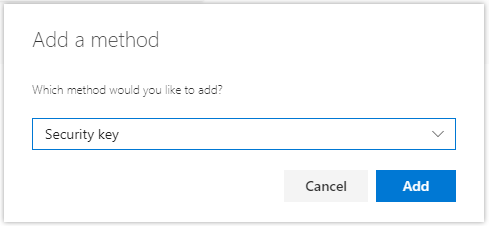 We will click on the ‘Add method’ to add our eWBM security key with a fingerprint.