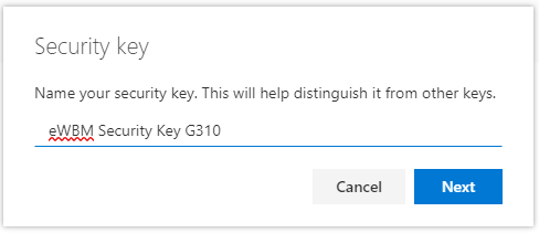 When you have touched the fingerprint scanner on the security key the get the option to give the key a name that is easy for you to remember.